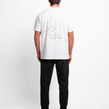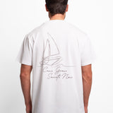 This oversized box-fit tee showcases a minimalist sailing-line design, delivering a striking monochrome aesthetic that elevates any look with clean, contemporary style.
